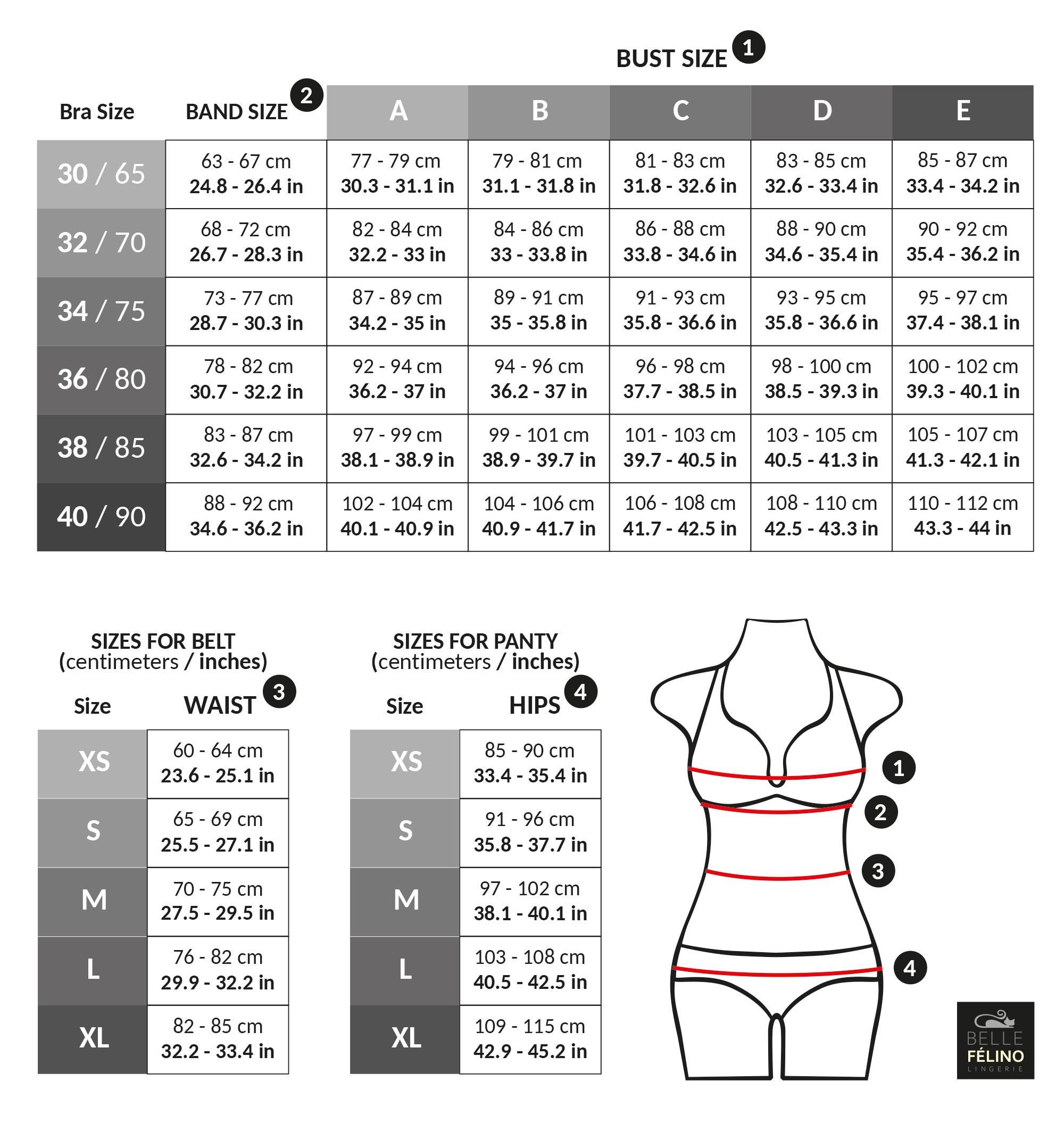 – Utilice nuestra tabla de tallas para asegurarse de que su ropa interior le quede perfectamente.